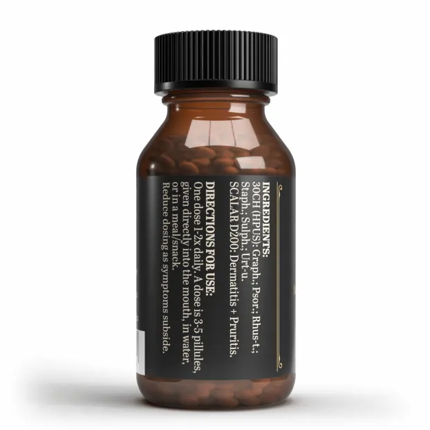 - 30CH (HPUS): Graph.; Psor.; Rhus-t.; Staph.; Sulph.; Urt-u.